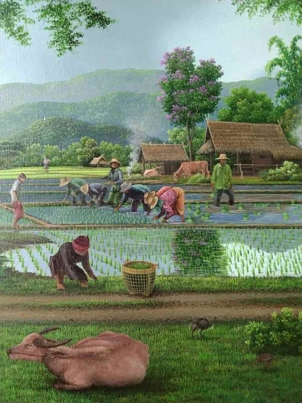 Mẫu vẽ tranh làng quê