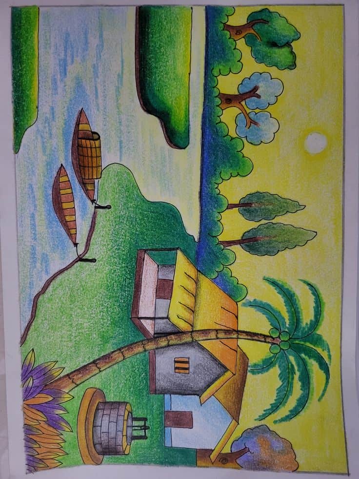 150+ Mẫu vẽ tranh phong cảnh quê hương – Lưu giữ kỷ niệm tuổi thơ