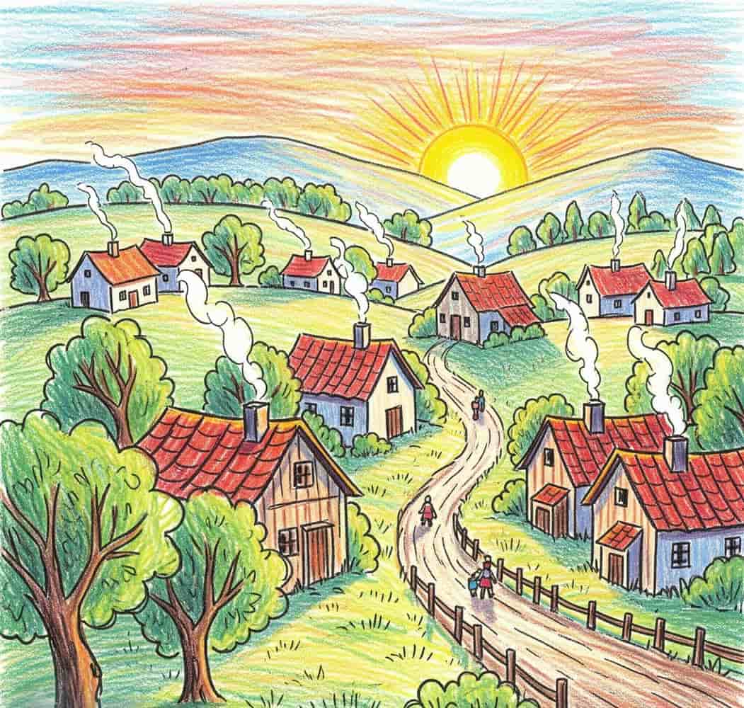 Mẫu vẽ tranh phong cảnh quê hương luôn mang đến cảm xúc thân thương, gợi nhớ tuổi thơ yên ả bên cánh đồng lúa chín, lũy tre làng, con sông quê và mái nhà đơn sơ. Những bức tranh ấy không chỉ đẹp mắt mà còn là nơi lưu giữ kỷ niệm một thời tuổi nhỏ không thể nào quên.
