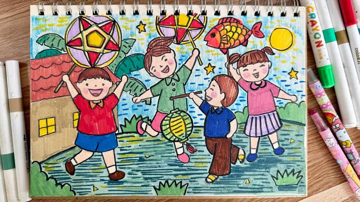 Mẫu vẽ tranh Trung Thu đơn giản, đẹp mắt không chỉ thể hiện nét văn hóa truyền thống mà còn lưu giữ khoảnh khắc sum vầy bên gia đình. Qua những hình ảnh ấy, Tết Trung Thu trở nên ý nghĩa hơn, lan tỏa niềm vui và tình thân trong mỗi người.