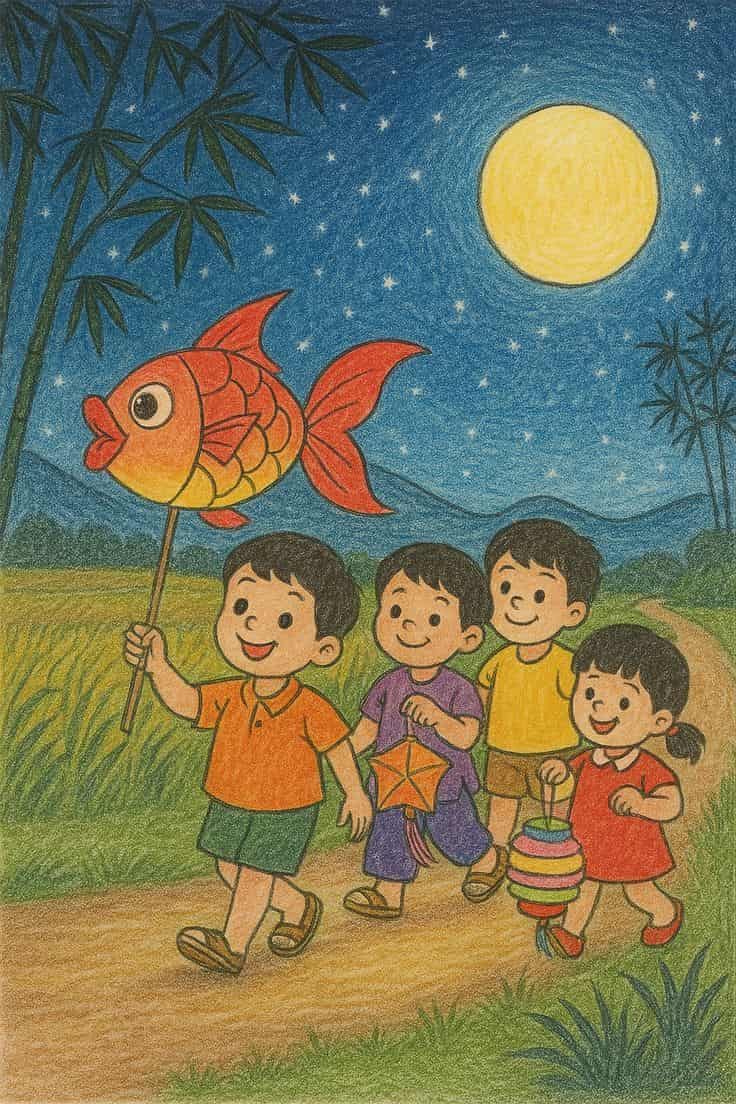 Mẫu vẽ tranh Trung Thu đơn giản nhưng đẹp mắt là cách tuyệt vời để lưu giữ không khí rộn ràng của Tết đoàn viên. Những hình ảnh như đèn lồng, trăng rằm, và phá cỗ không chỉ mang nét đẹp truyền thống mà còn tạo nên niềm vui, gắn kết gia đình trong dịp lễ đặc biệt này.